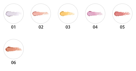 06 ピーチ ブロンズ:レッドやゴールドの光沢感がヘルシーな愛らしさ(*)をもたらすピーチブロンズ。さまざまなスキントーンに似合いやすい、顔色をイキイキとエナジャイズ(*)するようなカラー。