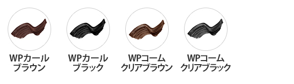 01 根元からキャッチして隙なく塗れる日本人の目幅を考えた“26mmのブラシ”&均等に液が付着する“塗布量調整パッキ”容器を採用。束感も抜け感も、目頭から目尻まで均等に仕上がる02 均一&ダマになりにくい“コーティング設計”まつ毛に塗るわずかな時間の粘度変化にこだわった“ドライコントロール”製法。何度重ねても根元は太く毛先は先細にコーティングしてダマになりにくい03 濃密イルミナ発色グロスポリマー配合。つや感あふれる美しい透明感発色04 まつ毛にもやさしい美容液成分(*1)配合4種の美容液成分(*1)配合。マスカラを塗るたびまつ毛ケア05 目元に使うものだから、抗菌(*2)ボトルを採用抗菌(*2)効果を持つ“独自開発素材VIRUTEX”を使用した容器で、樹脂からの抗菌(*2)成分を溶出します。(*1)オタネニンジン根エキス・ツバキ種子油・ビワ葉エキス・パールエキス(加水分解コンキオリンタンパク)(すべて保湿成分)(*2)すべての菌に有効性を示している訳ではありません。(抗菌性試験(JIS)による判定)。ご使用中に付着した汚れは拭き取って、清潔に保ってください。<マスカラ/全4色>WPカール ブラウンWPカール ブラックWPコーム クリアブラウンWPコーム クリアブラック