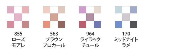 シェード:パレットブルー、ピンク、ライラック、ブラウンの4種類のハーモニー。一つ一つ鮮やかな色彩と中央にかつてない煌めきのウルトラ グリター、そして豊かなテクスチャーでモードな仕上がりを叶えます。