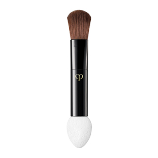 左下のアイシャドウベースを専用の白いチップで取り、アイホール全体に塗布します。