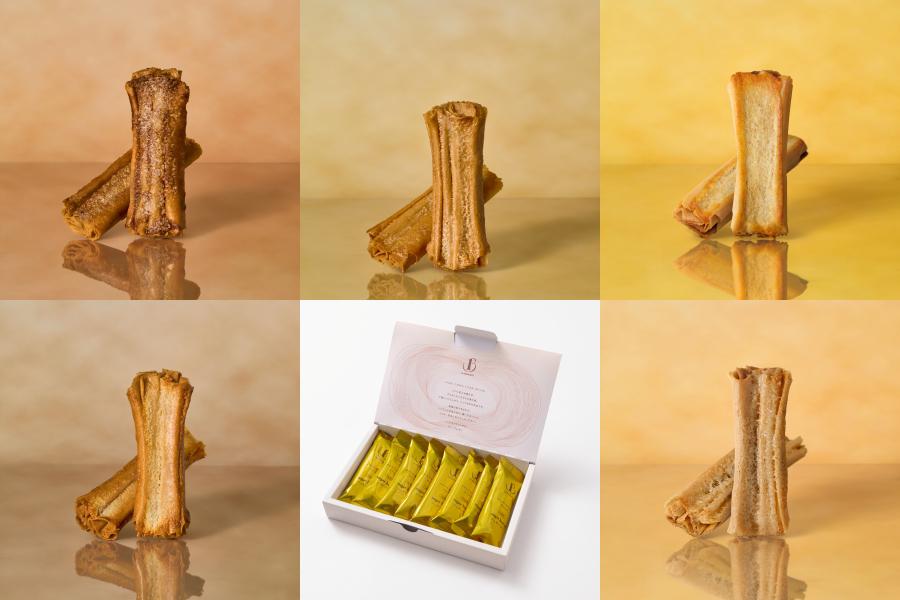 繊細な素焼きのクレープ生地の味わいをお届けしたいという思いから誕生した代表商品。発酵バターをたっぷりと練り込んで焼きあげたクレープ生地を幾重にも丁寧に折り重ね、その上にペーストを塗り軽く焼きあげました。香ばしい素焼きのクレープ生地が持つ独創的なクリスピー食感を活かした風味豊かな味わいをお楽しみいただけます。