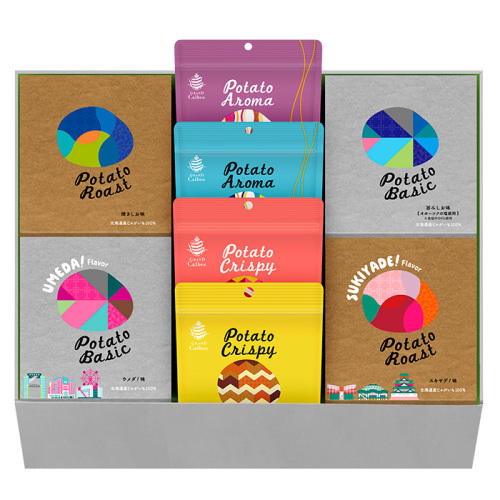 スナック菓子の有名メーカー「カルビー」が届ける、ワンランク上のポテトチップスです。このセットに入っているのは「旨みしお」「伊勢海老のビスク」「トリュフソルト」など8種類のフレーバー。