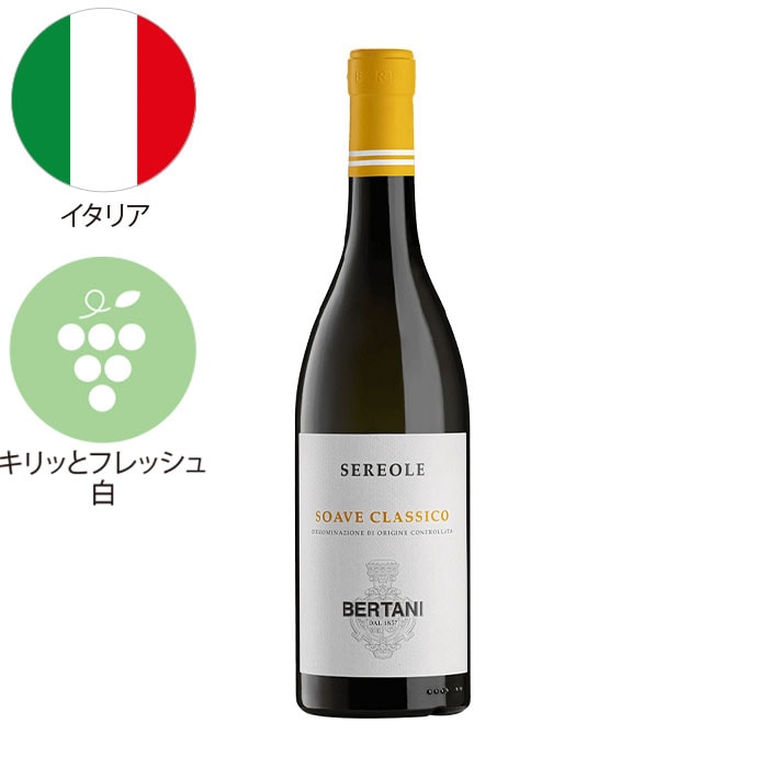 単一畑“セレオーレ”の選び抜かれた完熟ブドウから造られるこのソアーヴェは、洋ナシの香りの後にアプリコットやパイナップル、メロンを想わせる甘い果実の香りが広がる、まろやかでバランスの取れたワインです。