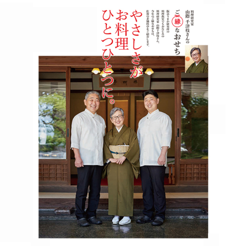 佐賀で創業100年を超える伝統ある料亭「楊柳亭」の総料理長 菱岡範之さん、そしてお父様と同じ道を志した英貴さん。「おせちは一年の総仕上げです、私たちは一年かけておせち料理をつくっていますから」と範之さん。例えば黒豆は、旬の時期に仕入れて水につけてその年の出来を確認します。ブランド産地にこだわるのではなく、その年の一番出来のいい産地のものを使う。ほかの食材も然り、そうして一年を通しておせちのための食材を揃えていくそうです。さらに同じ食材でもその年によって味が変わるため、調理方法も変えているそう。100人規模のお食事会も開催されるお店でありながら、カウンターだけの割烹のように繊細で、ひとつひとつが丁寧。料理をよろこんでもらうために手間をおしまない、料理人のやさしさがつまっています。