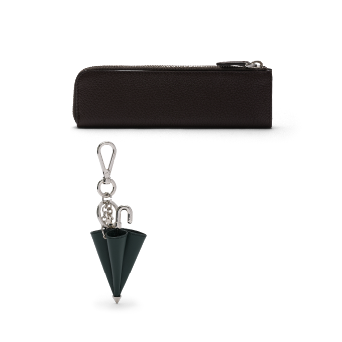 クラシカルな雰囲気のペンケースと手のひらに収まるチャームで、さりげないラグジュアリーを楽しめます。