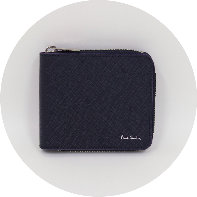 しなやかなレザーに波のモチーフをプリント。背面には便利なメタルの紙幣用クリップが1つ付いています。