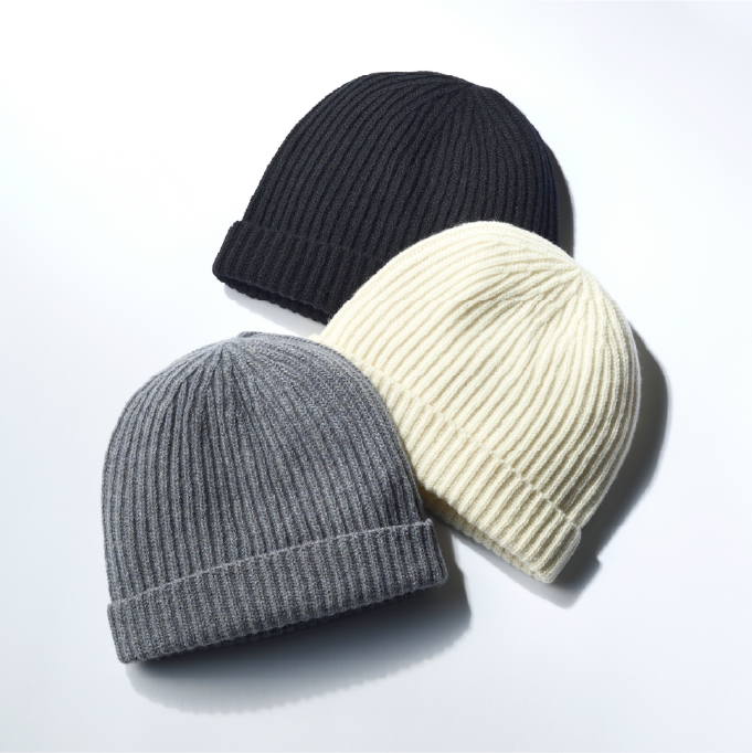 カシミヤブレンドでとてもやわらかな質感。トップスとカラーを揃えたチョイスがおすすめです。