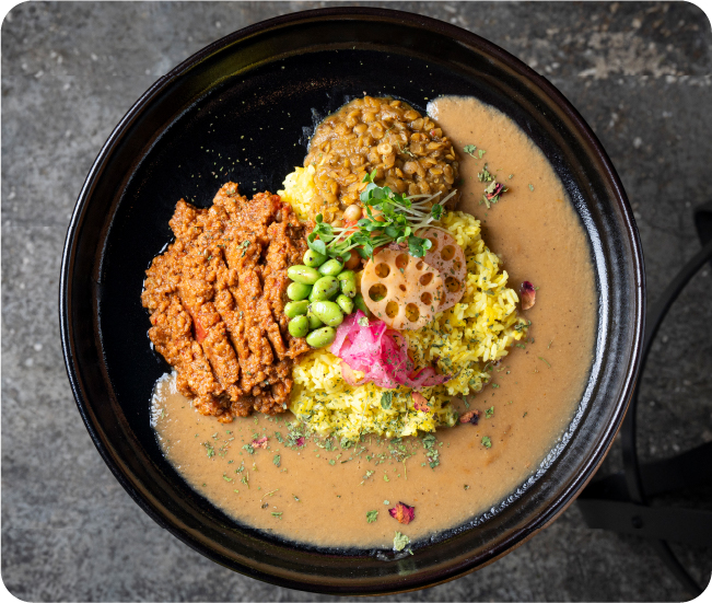奈良市でインド料理店を営む「toi印食店」です。多様なインド料理を軸に、日本らしさとインドらしさを、地元の食材や旬のものを使い当店なりに表現した一皿を提供しています。