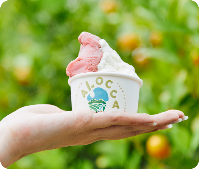 「アロッカ」さんのジェラートの魅力は、素材そのものの味がしっかりと感じられること!店頭に並ぶフレーバーからその時期の旬が分かるほど、素材の鮮度と季節感を大切にされているお店ですね。毎回新作は欠かさず食べる、そんな私のおすすめフレーバーは「香月ワインズ」さんの摘果ぶどうとワインを搾った後のぶどう果皮を使った“香月ワインズソルベ”です!ぜひワインと合わせてお楽しみください。