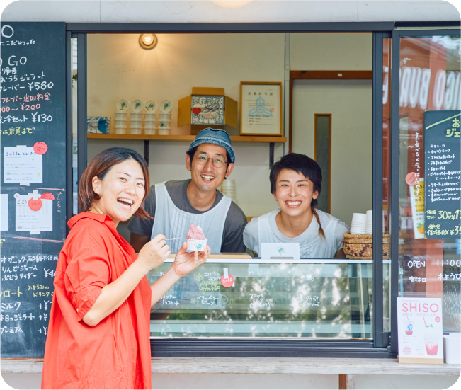 農薬や化学肥料をできるだけ使わない自然生態系農業を推進する綾町。ここでは、体にも心にもやさしい綾町産素材を使ったジェラートやスープカレー、ワインなどをラインアップ!