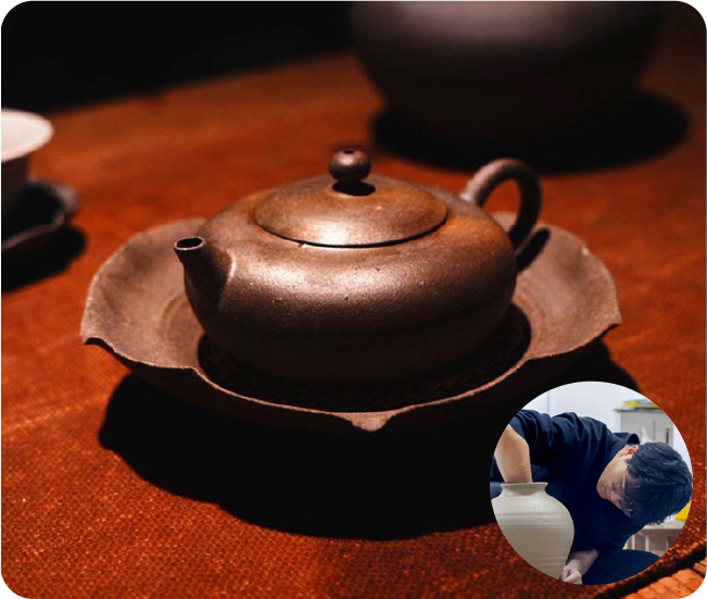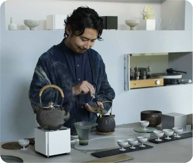 京都の鴨川五条にある宿と茶店。江戸時代創業の茶道具を扱う家に生まれた亭主の小嶋万太郎さんと、台湾での生活が長かった妻の慧さんが始めたお店。今年も日替りで、2種のお茶とお菓子をお楽しみいただける出張茶藝室を開きます。淹れるお茶には、池半地下に湧き出る京都の地下水を使用。今年は、気鋭の作家さんたちが手がけた茶器やアンティークの茶道具もご紹介しますので、ぜひお気に入りの道具を見つけてください。