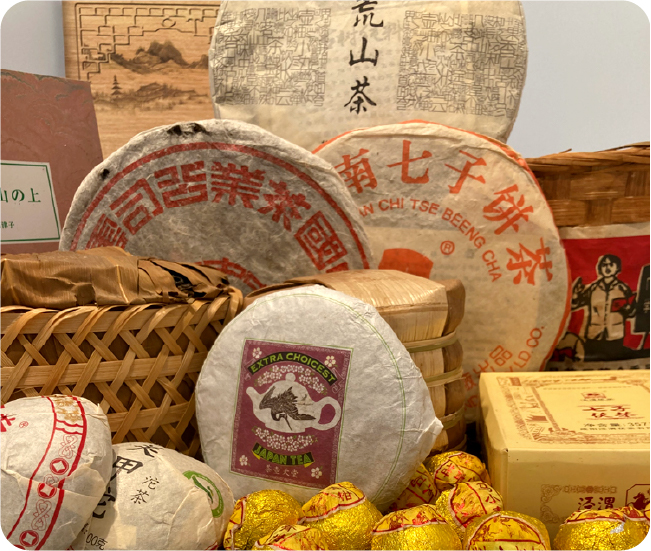 1980年代末に香港でプーアール茶に出会い、おいしさはもちろん、発酵茶として健康にも良いとされること、馬牛によって遠路運ばれたため茶葉に様ざまな形があることなど、魅力の多さに気づいた店主が営むお店から。茶葉の栽培期間中無農薬に加え、地中のミネラルを多く含んだプーアール茶の良さを知ってもらうべく、試飲茶もご用意しています。