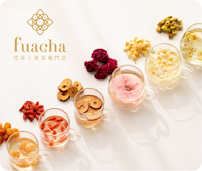 “日々頑張る女性たちに、気分も体もよろこぶものを取り入れてほしい”という想いから、花と果実だけで作ったノンカフェインティーをお届けします。バラ、ジャスミン、菊、金木犀など様ざまな花を使った花茶。なつめ、ろんがん、クコの実など果実を使った果茶。中国では薬膳として役立てられる花と果実は、季節や体調に合わせて、体と心の向くままに楽しんでいただけます。