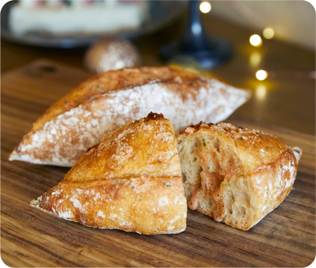 “日常に小さな贅沢を”をコンセプトに北海道産小麦粉や農園直送野菜などを使用し、身体への優しさとおいしいを両立させました。「ダマンフレール」の紅茶を使用した生地に、りんごとクルミを合わせた上品なシュトーレンは、冷蔵庫で冷やしてお召し上がりください。
