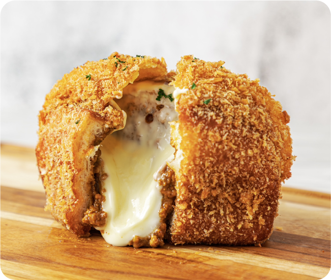 大阪狭山市にある夫婦で営むベーカリー。おいしいパンでプチ贅沢を味わってもらいたいという想いでパンを焼いています。白桃、イチジク、グリーンレーズンなどを白ワインとラム酒に1カ月漬け込んでいます。生地は石臼挽き小麦など3種をブレンドし、ホイップバターを入れることでさっくりとした食感と口どけに。コーヒーと一緒にお召し上がりください。