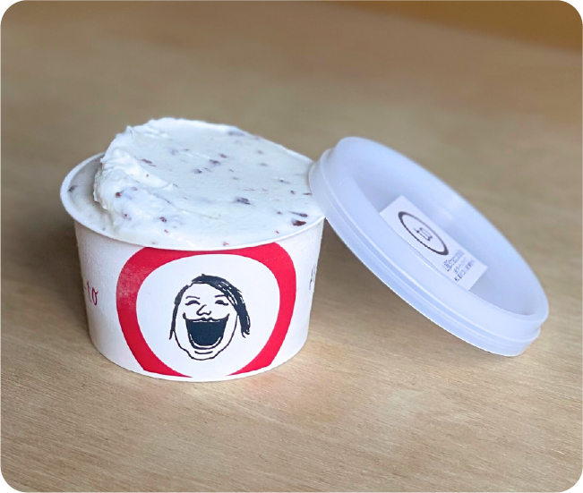 岩手を代表する農園「サンファーム」のりんごを使って、りんごと言えば!のお菓子、“タルトタタン”をカップアイスにしました。昨年このイベントでも大人気だった“焦がしたキャラメル”のアイスに、タルトタタンにした角切りのりんごを混ぜ込んで、発酵バターをたっぷり使ったシュクレ生地と一緒にザクザクとキャラメルアイスに混ぜ込みました。ひと口食べるとタルトタタンの味が楽しめます!