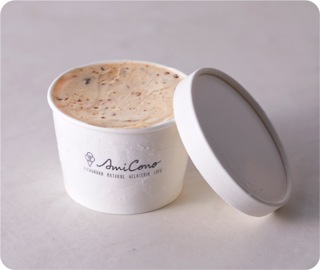 今回イチオシのカップアイスは、お店で一番人気のフレーバー“塩糀キャラメルコーヒー”!有機豆乳ときび糖を合わせたまろやかで濃厚な焦がしキャラメルアイスに、「Appartement」のコーヒー豆をぱらりとトッピング。こだわりは、店主・藤川さんの中学校からの親友MAROの米糀で作る、自家製塩糀。塩糀を入れることでヴィーガン(※)なのに、濃厚で奥行きのある味わいに。でも甘すぎず毎日食べたくなる飽きのこないフレーバーです。深煎りや中深煎りの香ばしいコーヒーと一緒に食べるとよりおいしく!また、藤川さんの裏技的なおすすめの食べ方は、このアイスをアイスラテや無糖のカフェオレに浮かべると、とっても贅沢なキャラメルラテになるそう!ぜひお試しを。