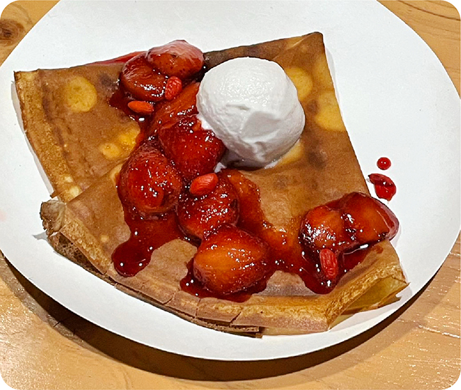 ジェラートの本場・イタリアでの修業時代に、「ジェラートは素材の味をダイレクトに感じるからこそ、日本の食材のおいしさをジェラートで広めたい」という思いに至った店主の森兼ともみさん。日々、果物や野菜の生産者を訪ね、素材を最大限に引き出すジェラートを作っています。今年も会場にジェラートマシンを持ち込んで、できたてのジェラートを提供。今回はこのイベントの特別フレーバーとして、「ともみジェラーto」の冬の風物詩、“ジェラートでできた特製シュトレン”が、カップジェラートになりました。通常はホールサイズでの販売のため、少し楽しみたい方にもぴったり!シュトレンの味を再現したジェラートに、ラム酒やワインに漬け込んだドライフルーツとナッツたちを混ぜ込んで、自家製の栗の渋皮煮をトッピング!手のひらサイズで楽しめる“ジェラートシュトレン”で、クリスマス気分をグッと高めて。