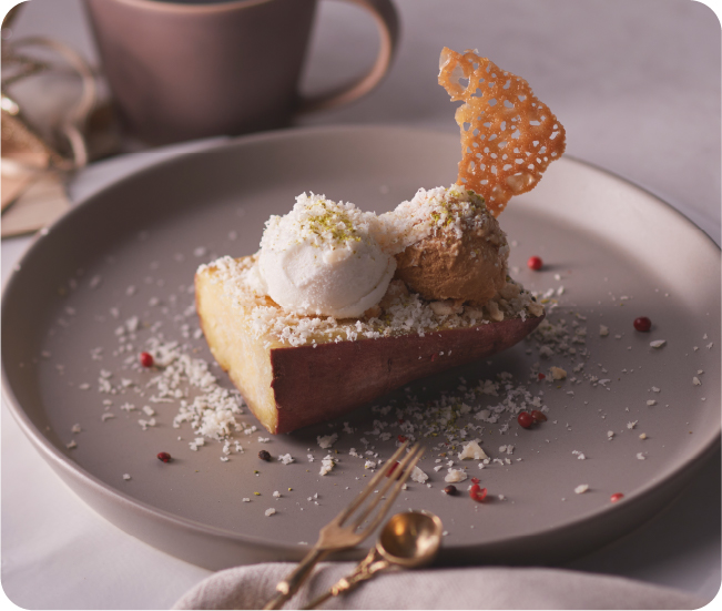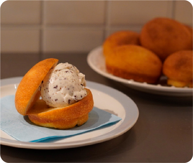 「ジェラテリア リントッコ」のジェラートを挟んだドーナツを夏季限定で提供する、兵庫・門戸厄神のベーカリー「gnome(ノーム)」からのリクエストで生まれた、ドーナツに合うチャイジェラート。有機アッサム紅茶のジェラートに、兵庫・宝塚にある「うめうめFARM」の生姜(栽培期間中農薬・化学肥料不使用)やハーブ、店主自ら収穫した兵庫・宝塚「めぐる八百屋 オガクロ」の完熟赤山椒などのスパイスを加えて奥深い味わいに。冷たいジェラートなのに、スパイシー&ホットなフレーバーで、ドーナツやパンとベストな相性!ぜひペアリングをお楽しみください。